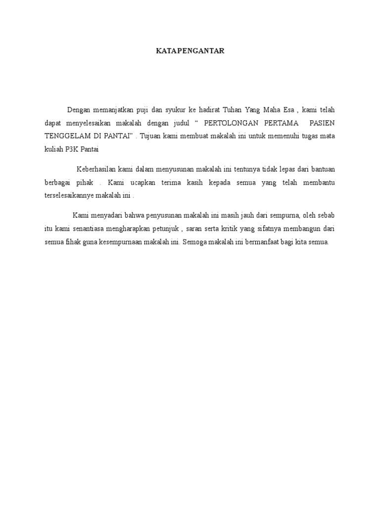 MAKALAH P3K AIR.doc - BAB I PENDAHULUAN Pertolongan Pertama merupakan tindakan pertolongan yang diberikan terhadap korban dengan tujuan mencegah keadaan | Course Hero