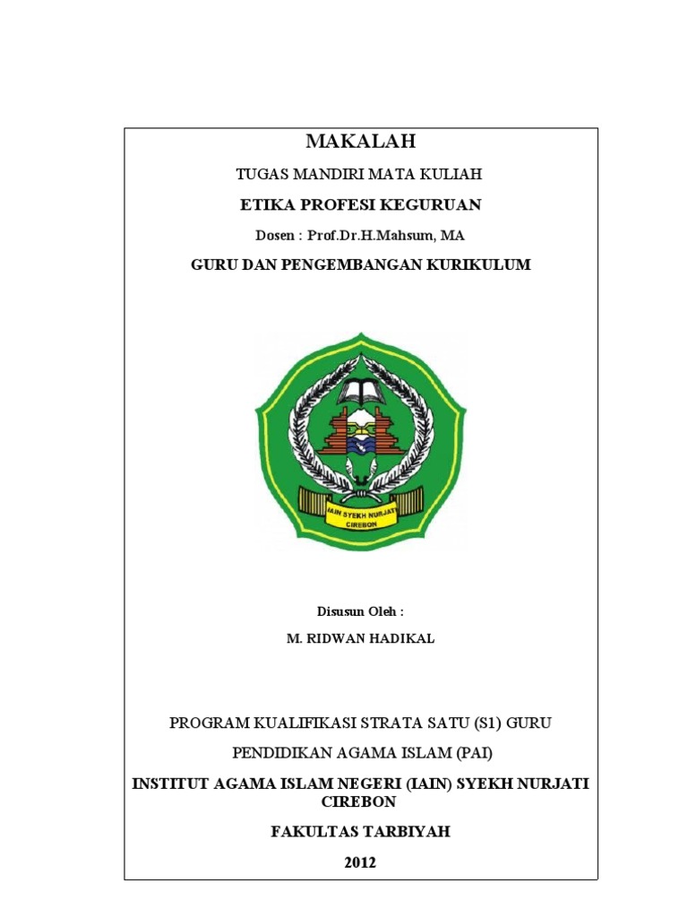 DOC) MAKALAH PENGANTAR PROFESI KEPENDIDIKAN SEKOLAH TINGGI KEGURUAN DAN ILMU PENDIDIKAN (STKIP) NURUL HUDA SUKARAJA | Hendry Cover - Academia.edu