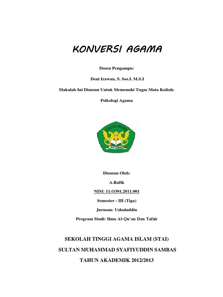 PDF) makalah psikologi agama: konversi agama | fatim fatimah - Academia.edu