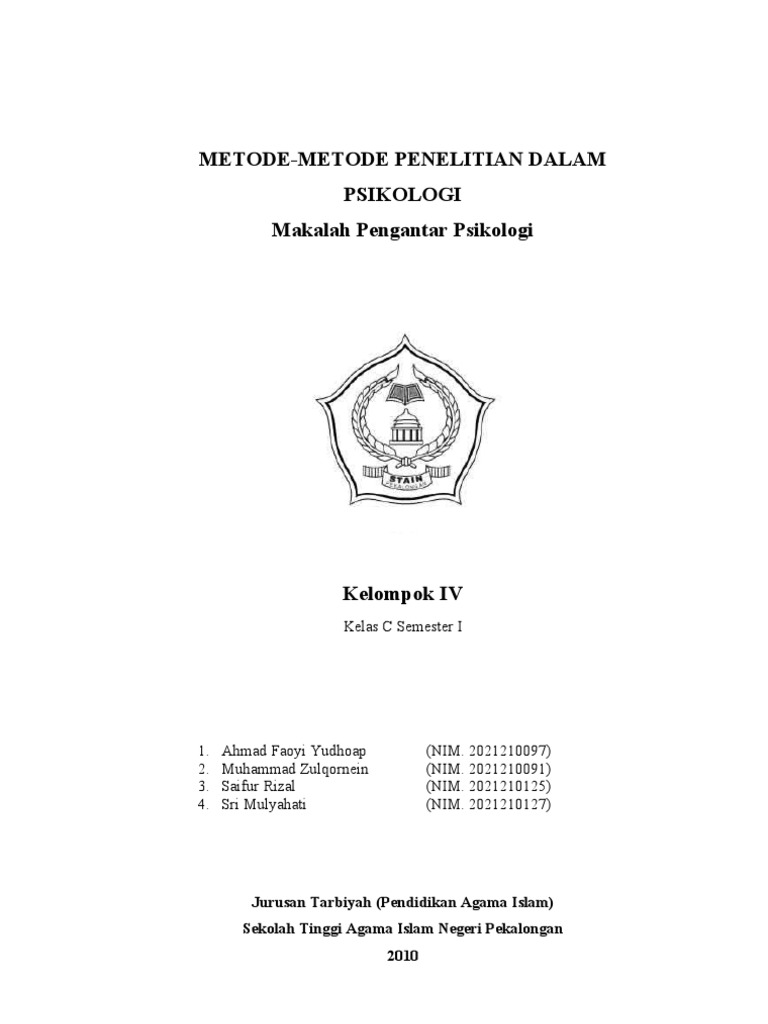 PDF) METODOLOGI DALAM KAJIAN PSIKOLOGI ISLAM