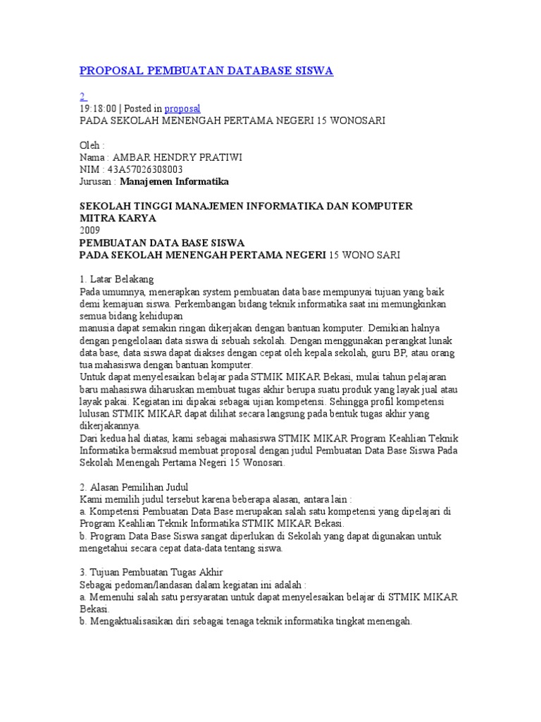Contoh proposal mysql database siswa - XavierVickers’s blog