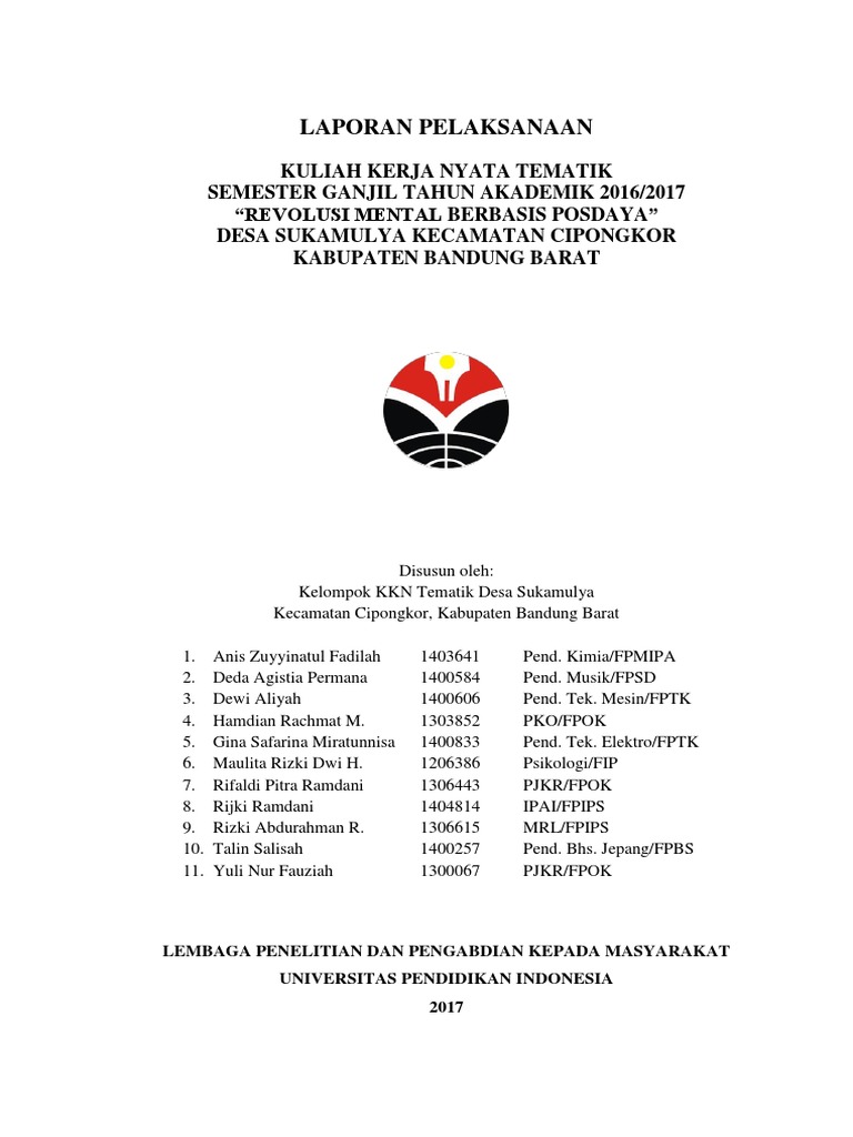 PDF) LAPORAN PELAKSANAAN KULIAH KERJA NYATA (KKN) UNIVERSITAS NEGERI JAKARTA | Wawan Dwi Hadisaputro - Academia.edu