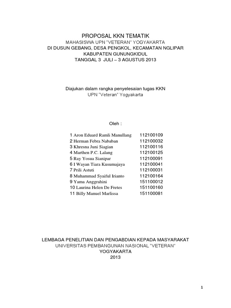 Proposal kkn pdf - nbsp;· Presentasi laporan kegiatan kkn tematik upi 2014 desa samarang kecamatan … PROPOSAL KEGIATAN KULIAH KERJA NYATA KKN KELOMPOK 49 Membangun Masyarakat yang