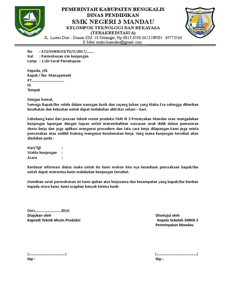 Contoh Surat Permohonan Kunjungan – Cute766