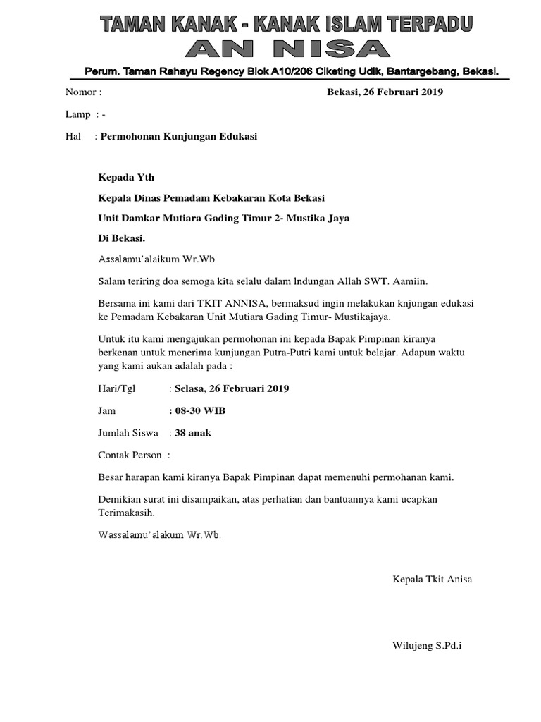 Contoh Surat Permohonan Kunjungan Paud Ke Pemadam – Resep Ku Ini