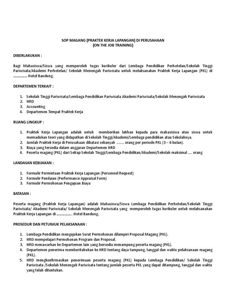 Contoh Laporan On The Job Training Front Office Department - Kumpulan Contoh Laporan