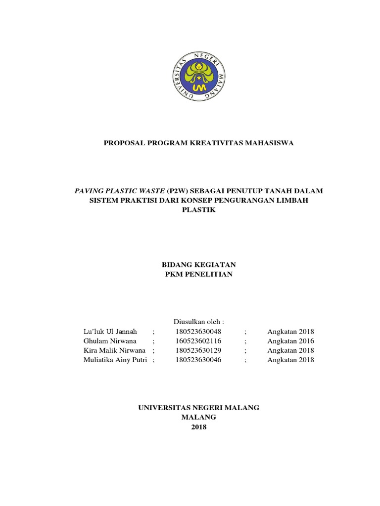 PDF) CONTOH PROPOSAL PROGRAM KREATIVITAS MAHASISWA JUDUL PROGRAM