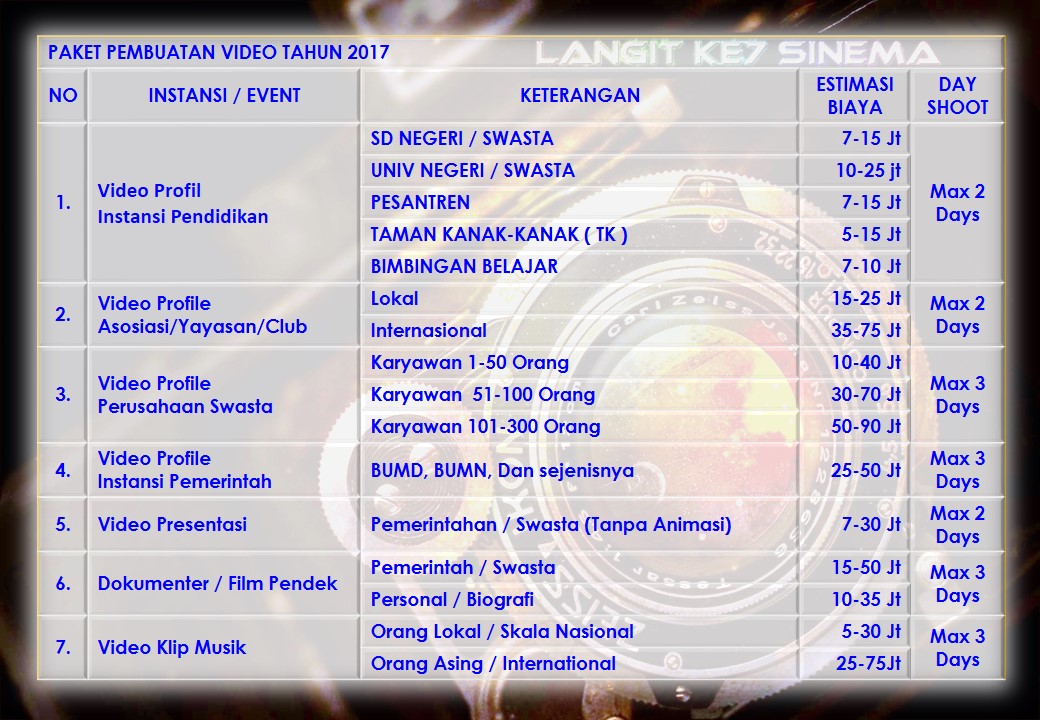 ESTIMASI BIAYA JASA PEMBUATAN VIDEO 2017