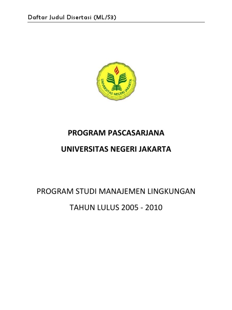 Daftar Judul Disertasi Ilmu Manajemen Lingkungan S3 (Doctorate Degree)