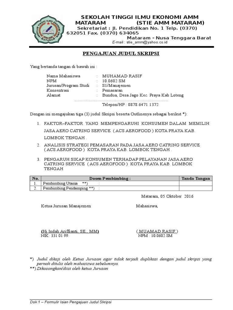 Contoh Pengajuan Judul Skripsi | Contoh Soal Dan Materi Pelajaran 10