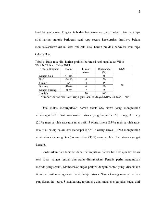 PDF) PENINGKATAN KREATIVITAS SISWA KELAS VIII-1 PADA MATA PELAJARAN SENI BUDAYA DAN KETERAMPILAN MELALUI MODEL PEMBELAJARAN KONTEKSTUAL | sDirman Qodir - Academia.edu
