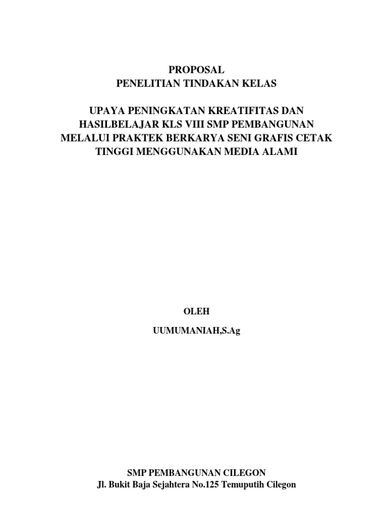 DOC) Contoh Proposal PTK Bahasa Inggris SMP | GaMES-C Plus - Academia.edu