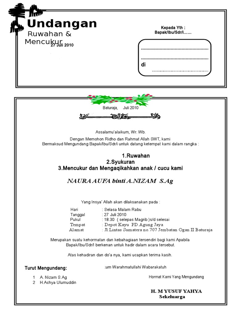 Contoh surat undangan syukuran