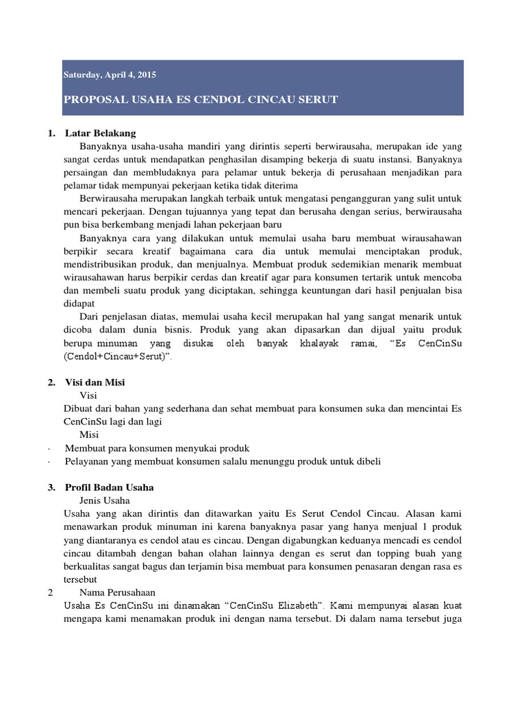 Proposal Usaha Es Cendol Cincau Serut - PDF Free Download