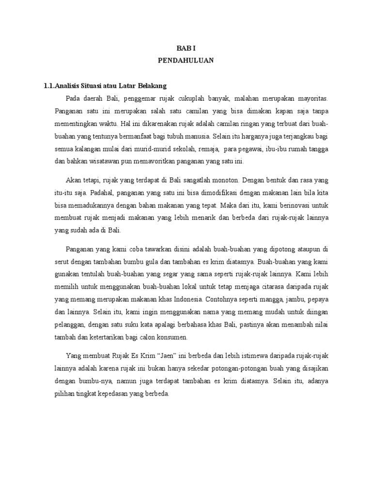 Proposal usaha rujak buah.docx - BAB I PENDAHULUAN 1.1 Latar belakang Rujak buah asam sunti adalah makanan yang terbuat dari irisan buah yang ditaburi | Course Hero