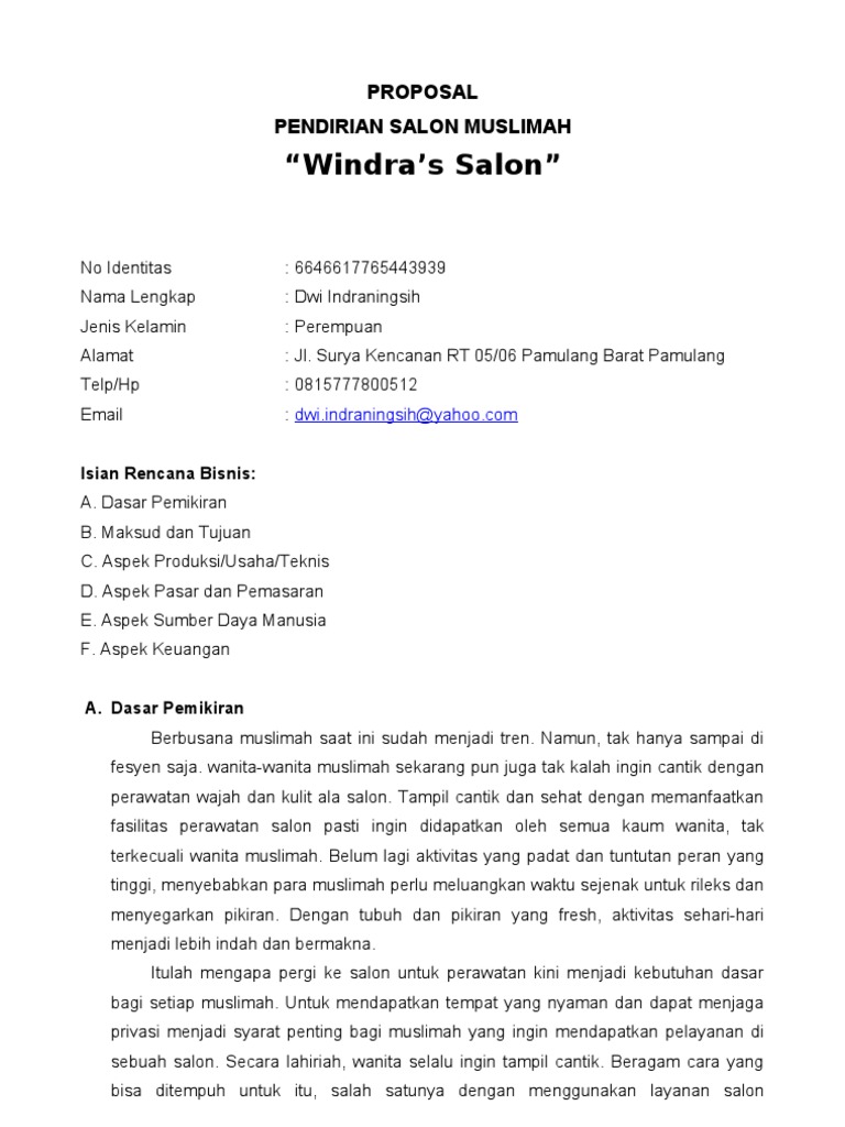 Proposal Pendirian Salon Muslimah Windra’s Salon