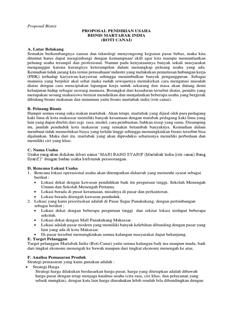 Contoh Proposal Usaha atau Rencana Bisnis | Proposal, Nama