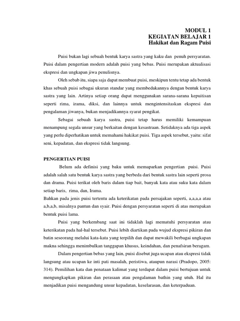 Modul 1 Kegiatan Belajar 1 Hakikat dan Ragam Puisi