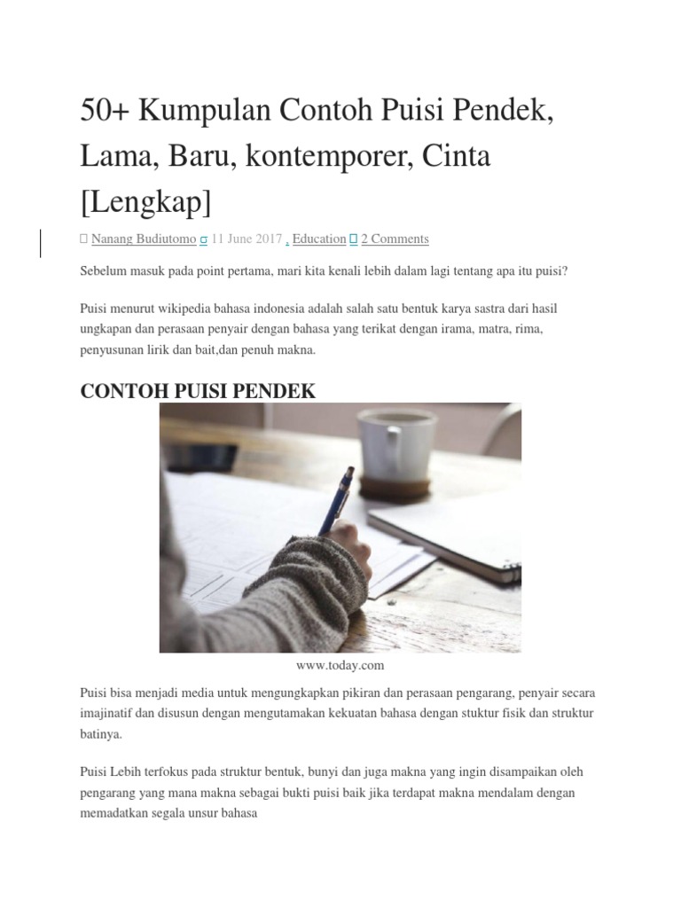 Cara Menulis Puisi dan Contoh-contohnya - - Berita Info Publik, Pendidikan Pelayanan Publik