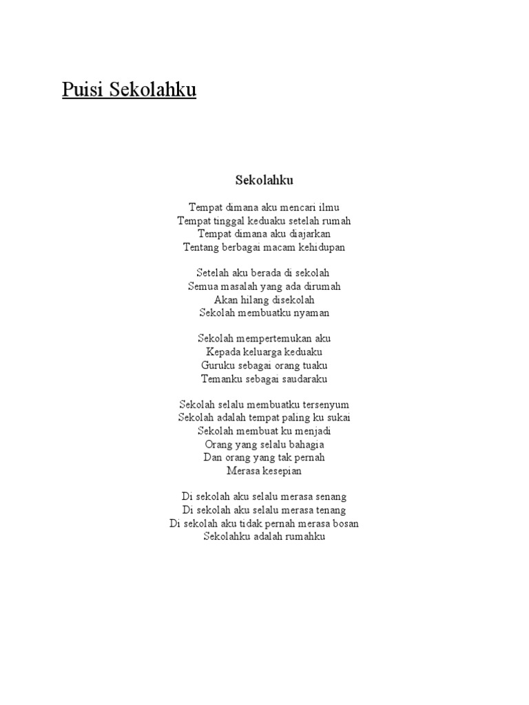 DOC) Kumpulan Puisi pendek Anak Sekolah Dasar | Panida Nurfazira - Academia.edu