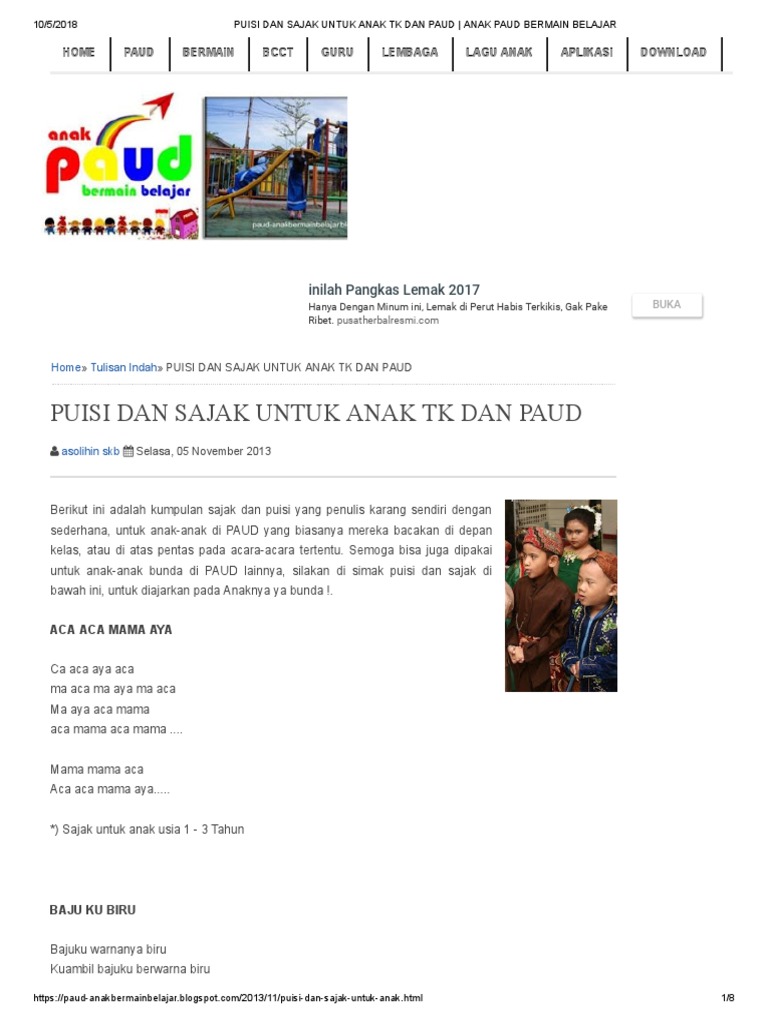 Kumpulan Contoh Puisi Anak Tk - Contoh Kumpulan Puisi Baru Terbaik