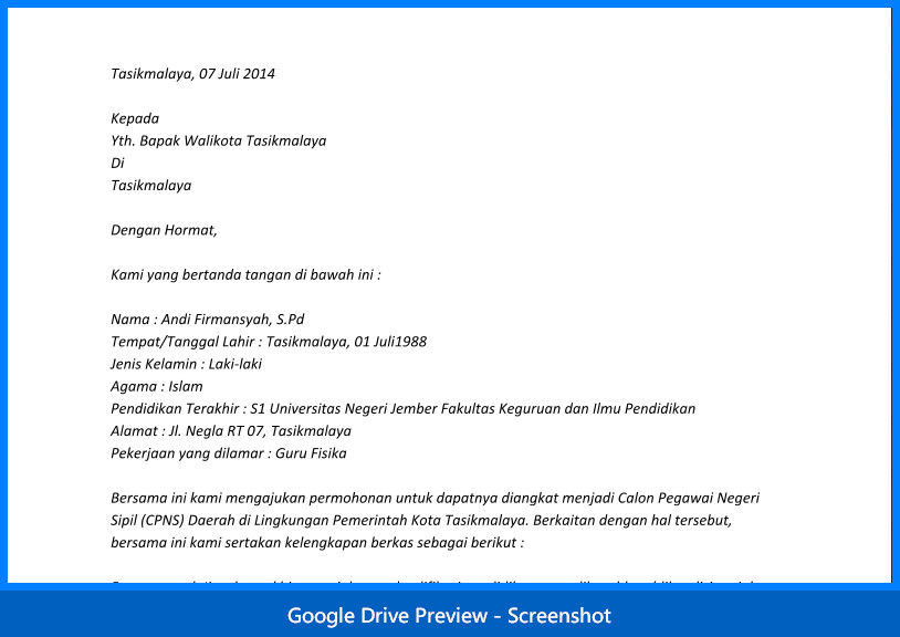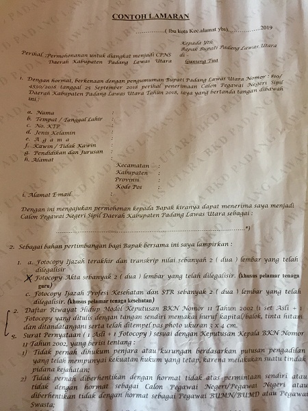 Contoh Surat Lamaran Cpns Jember