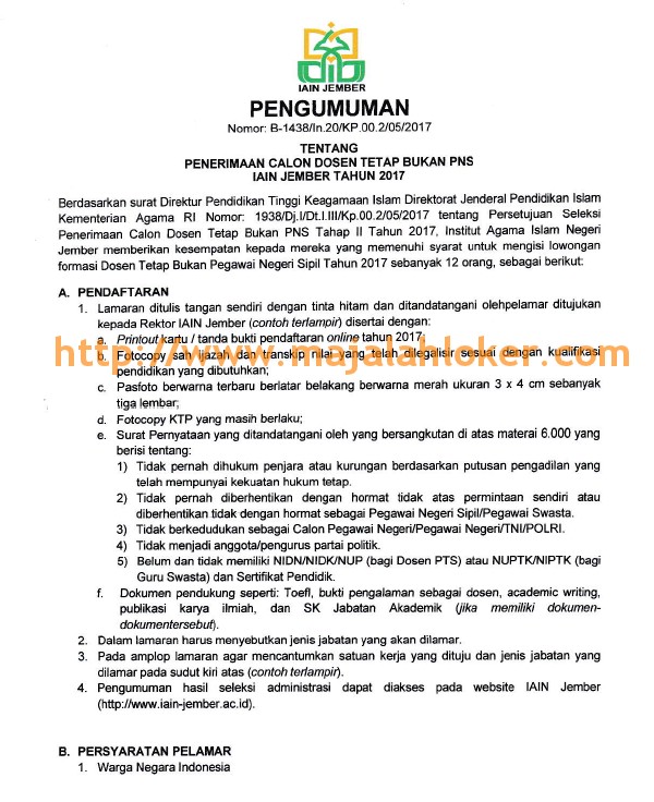 Rekrutmen Penerimaan Dosen Tetap Bukan PNS IAIN Jember Tahun 2017 - Lowongan Dosen