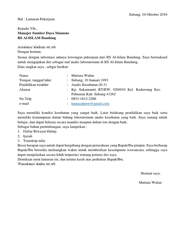 Surat Lamaran Kerja Analis Kesehatan | Wiki Edukasi Share