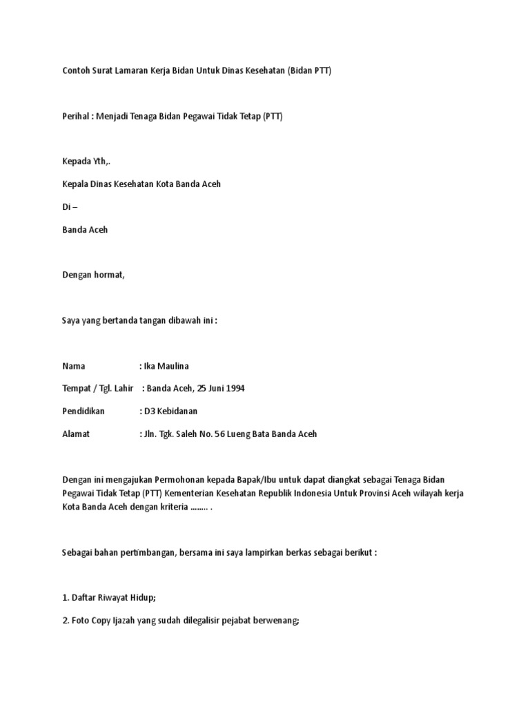 contoh surat lamaran kerja bidan untuk dinas kesehatan - Gawe CV