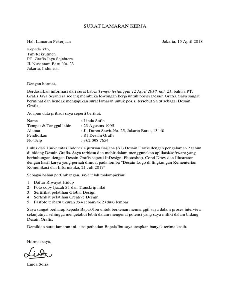 Contoh Surat Lamaran Kerja Desain Grafis | Desain grafis, Desain, Surat
