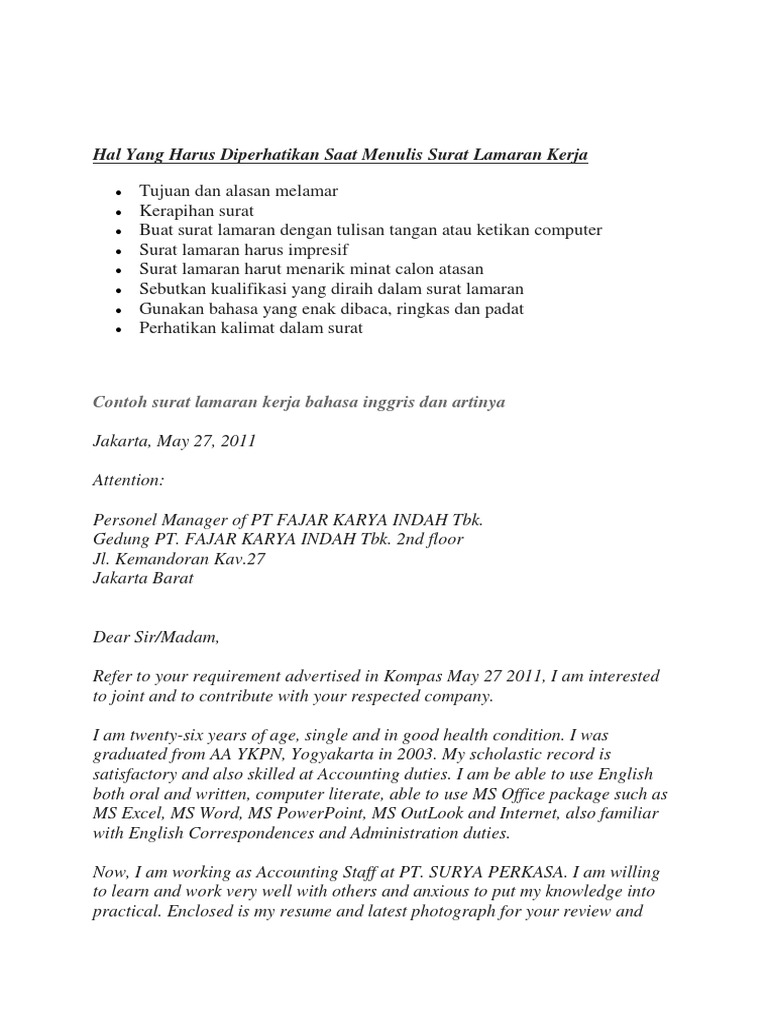 Contoh application letter yang baik dan benar dalam bahasa inggris / old.vlt.es