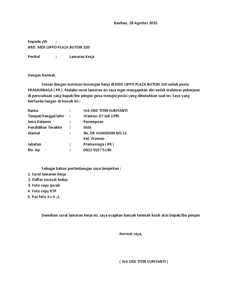 Contoh surat lamaran kerja Pramuniaga di 2020 | Surat, Gambar, Tulisan