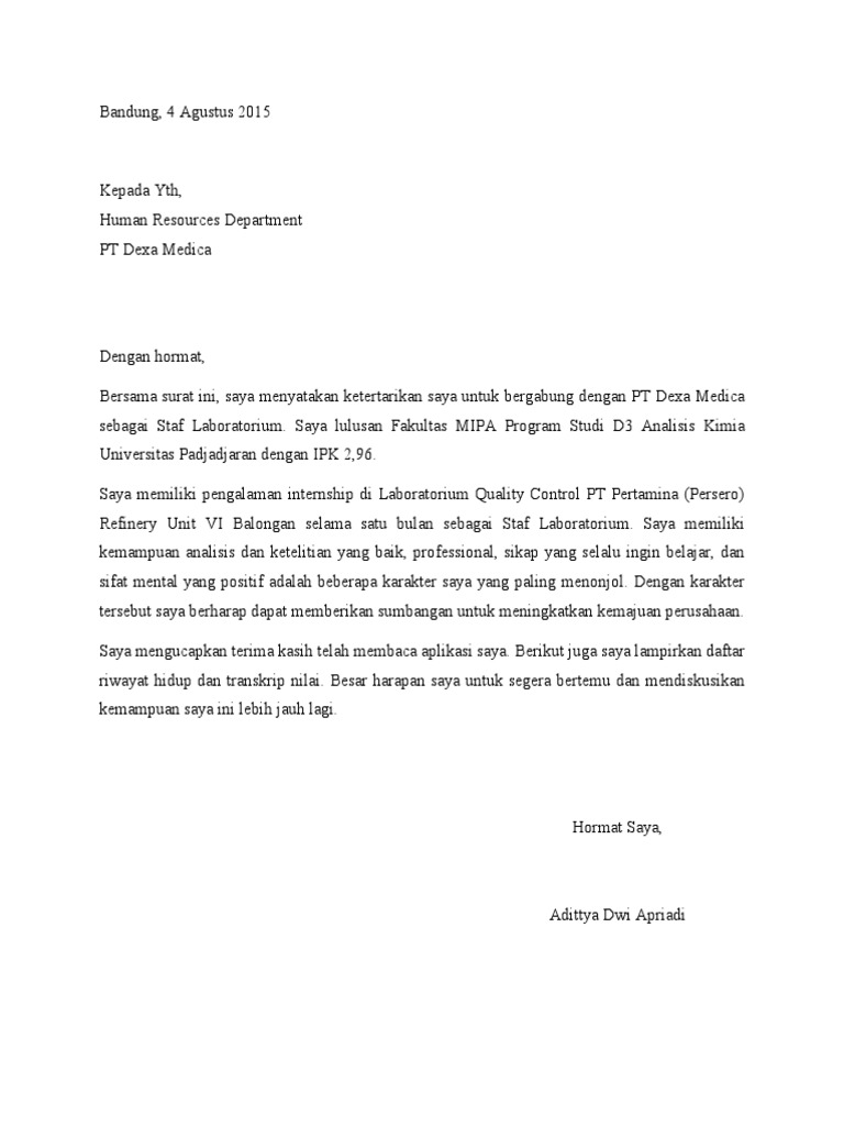 Contoh Surat Lamaran Kerja Pt Dexa Medica