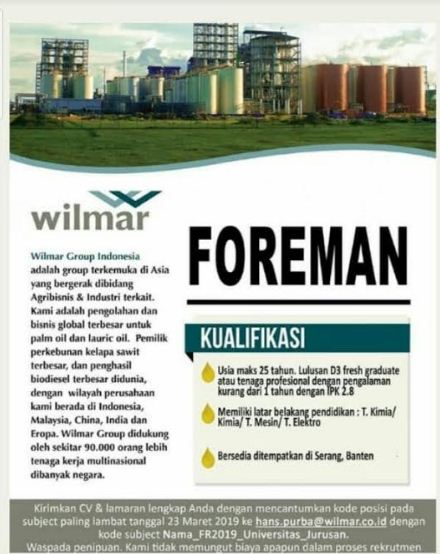 Lowongan Wilmar Open Recruitment - PT Wilmar Nabati Indonesia | ITS Career & Student Entrepreneurship Center