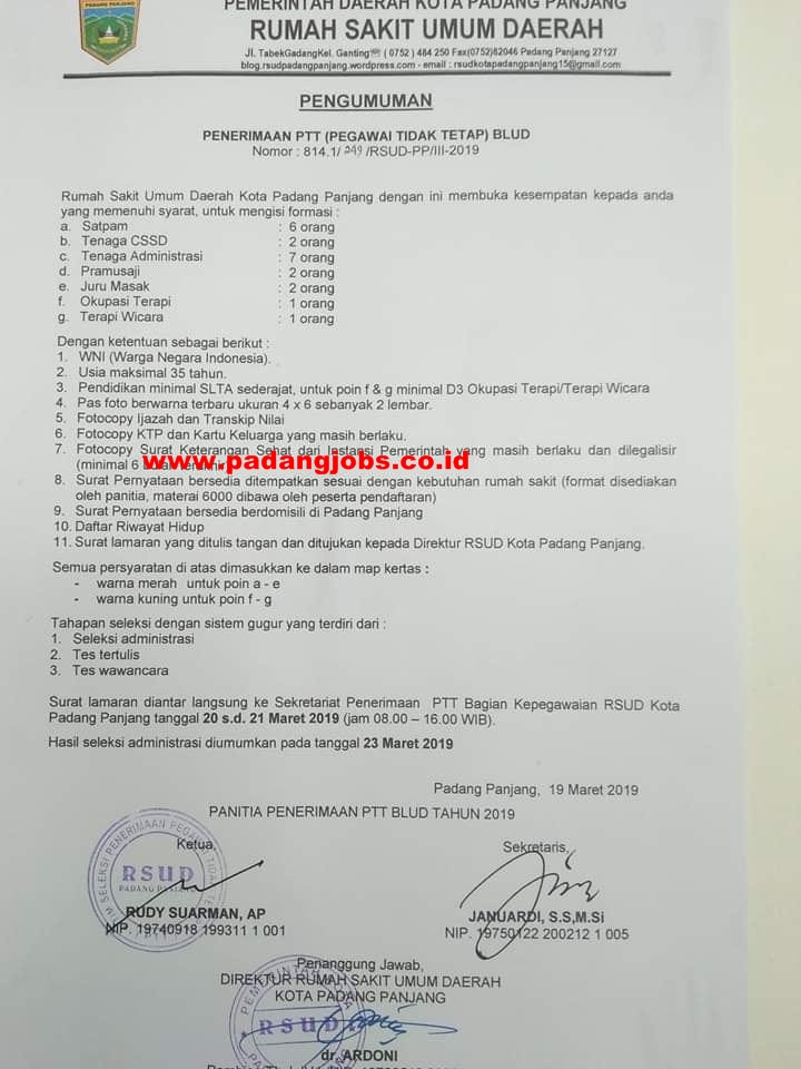 Lowongan Kerja RSUD Kota Padang Panjang Maret 2019 - PADANG JOBS - ID Lowker