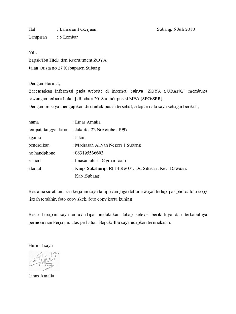 Contoh Surat Lamaran Sebagai Spg – Backup Gambar