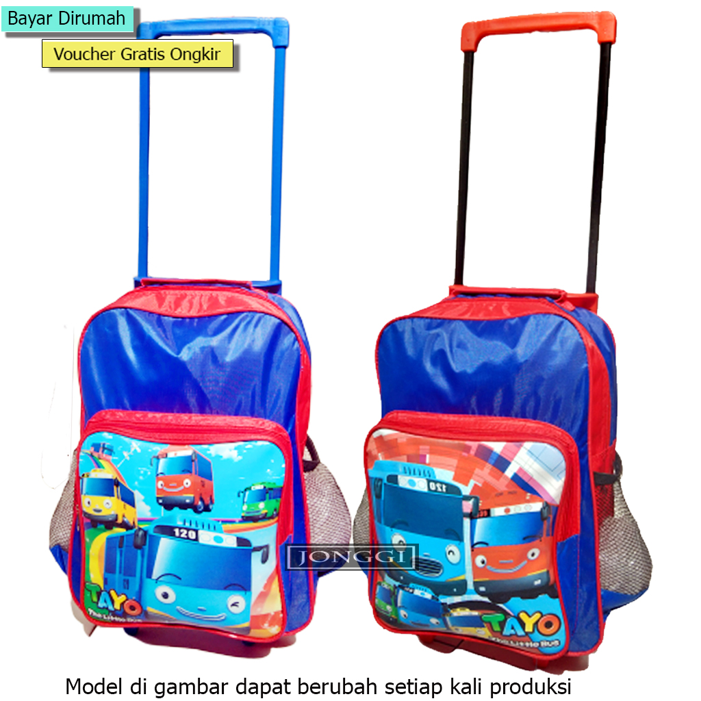 JONGGIBAGS - Tas Troli Anak TK Cowok Karakter Kartun / Tas Roda Anak TK / Tas Dorong 3 in 1 Bisa Dorong Bisa Gendong Bisa Jinjing / Tas Roda Anak TK /