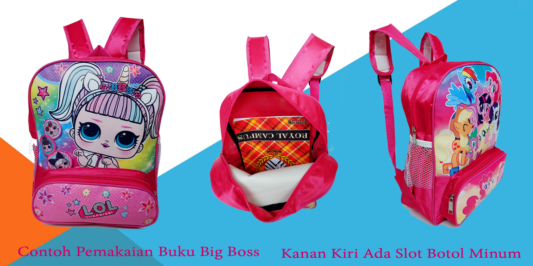 040 Tas Ransel Sekolah Paud - TK Anak Perempuan Gambar Kartun Free Botol Minum# | Shopee Indonesia