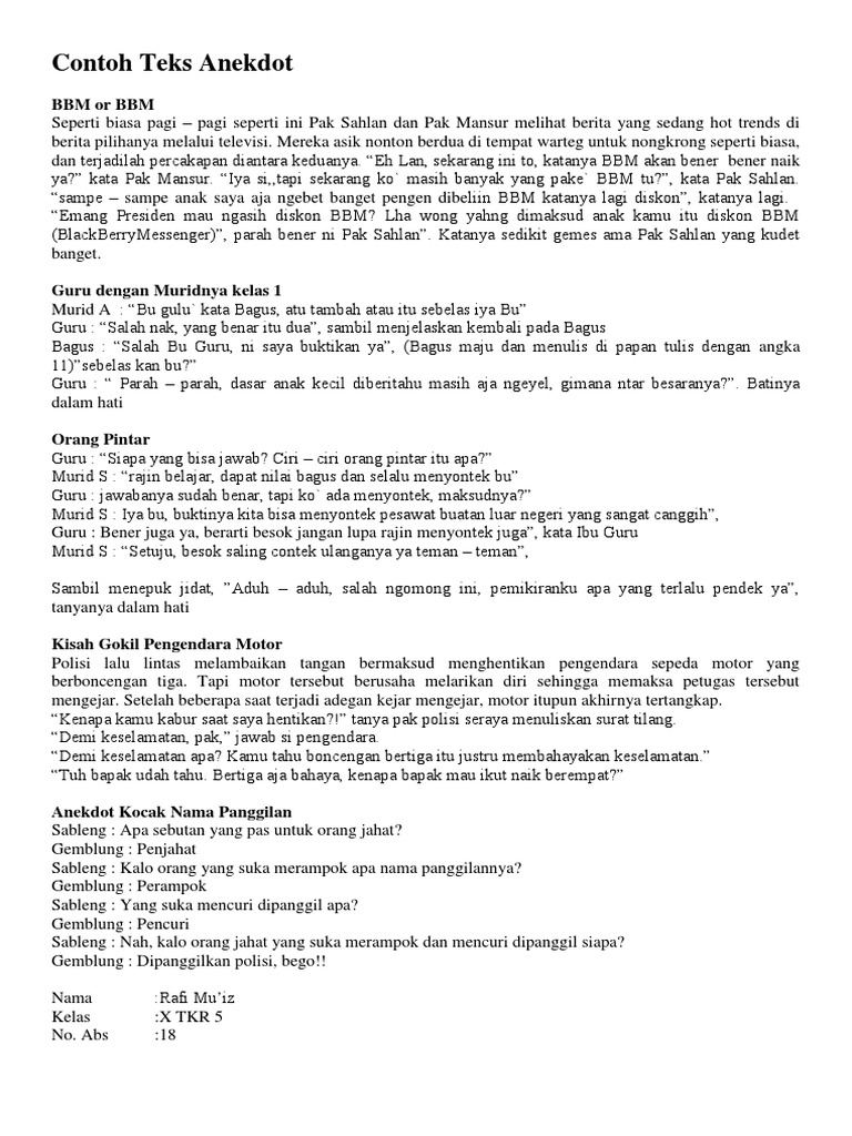 DOC) Modul KD 3.1 Teks Anekdot K13 | Hidayatul Ilmiah - Academia.edu