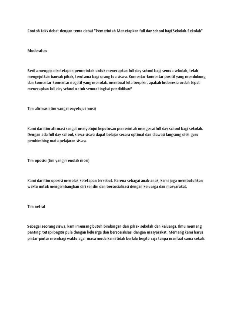 contoh teks debat beserta tim moderator tim afirmasi tim oposisi dan tim netral ? - Brainly.co.id