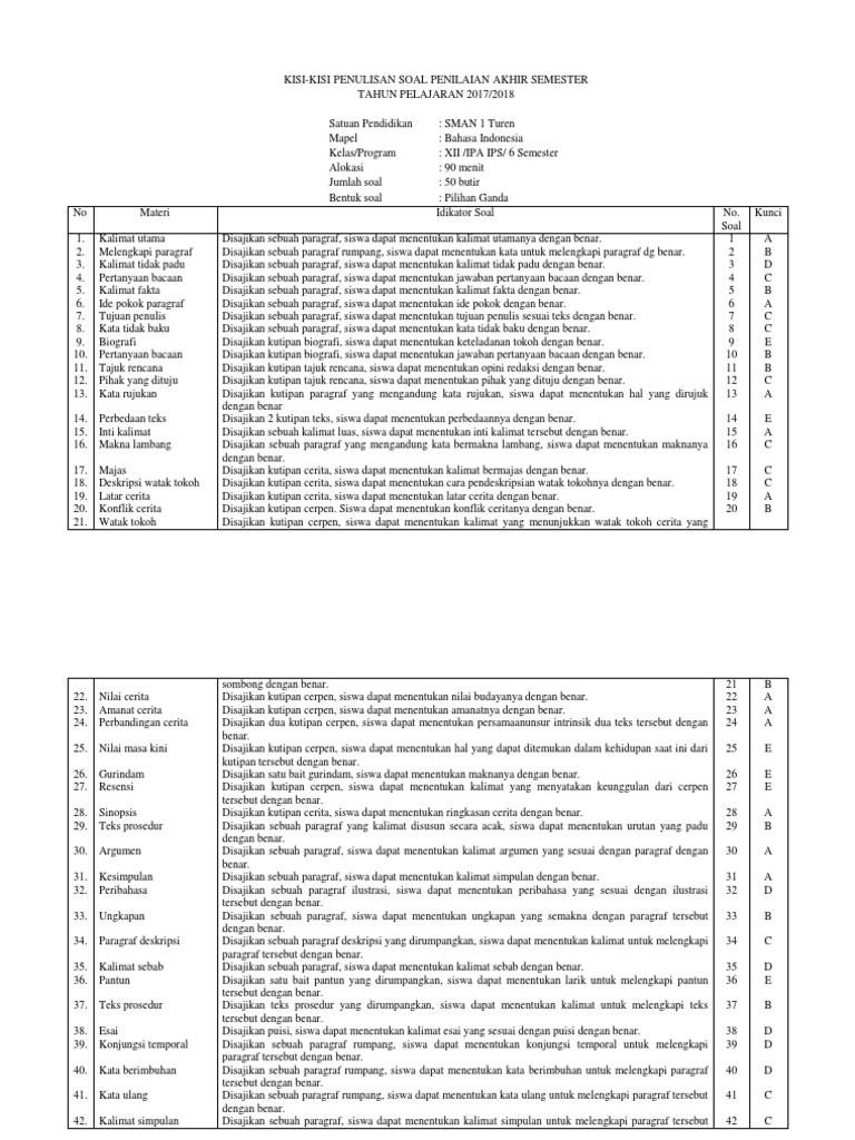 CONTOH INDIKATOR SOAL USBN TAHUN 2019 BAHASA INDONESIA KURIKULUM 2013 SMA/MA ~ ZUHRI INDONESIA