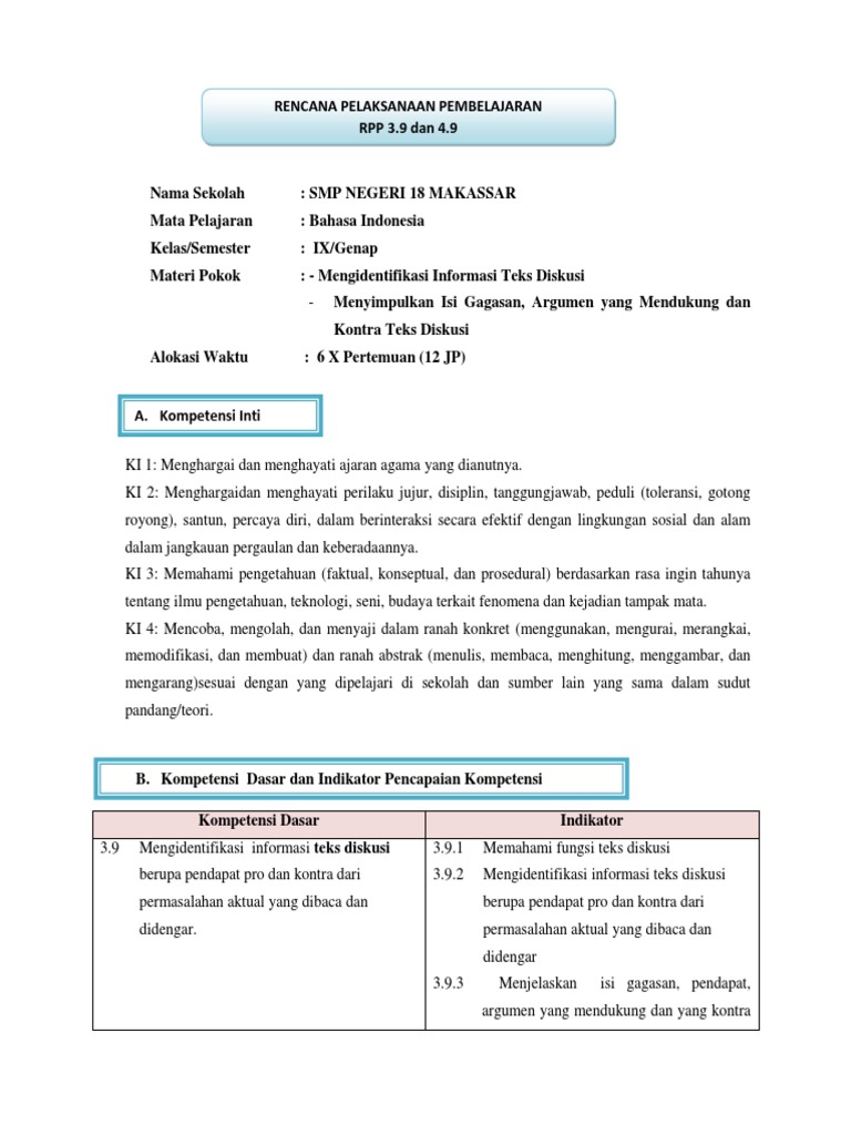 Rpp Teks Diskusi 3.9 - 4.9