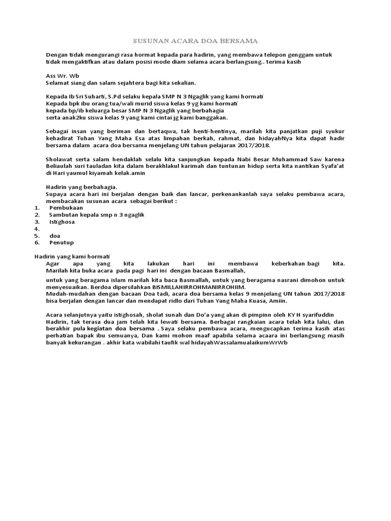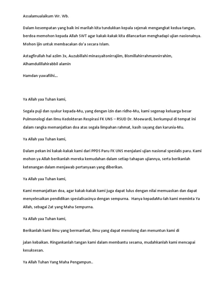 Contoh Teks Doa Bersama Menjelang Un - Berbagai Teks Penting