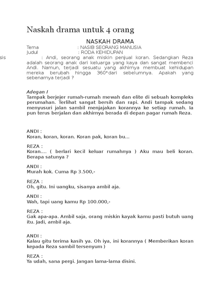 Contoh Naskah Drama 4 Orang Pemain | Documents