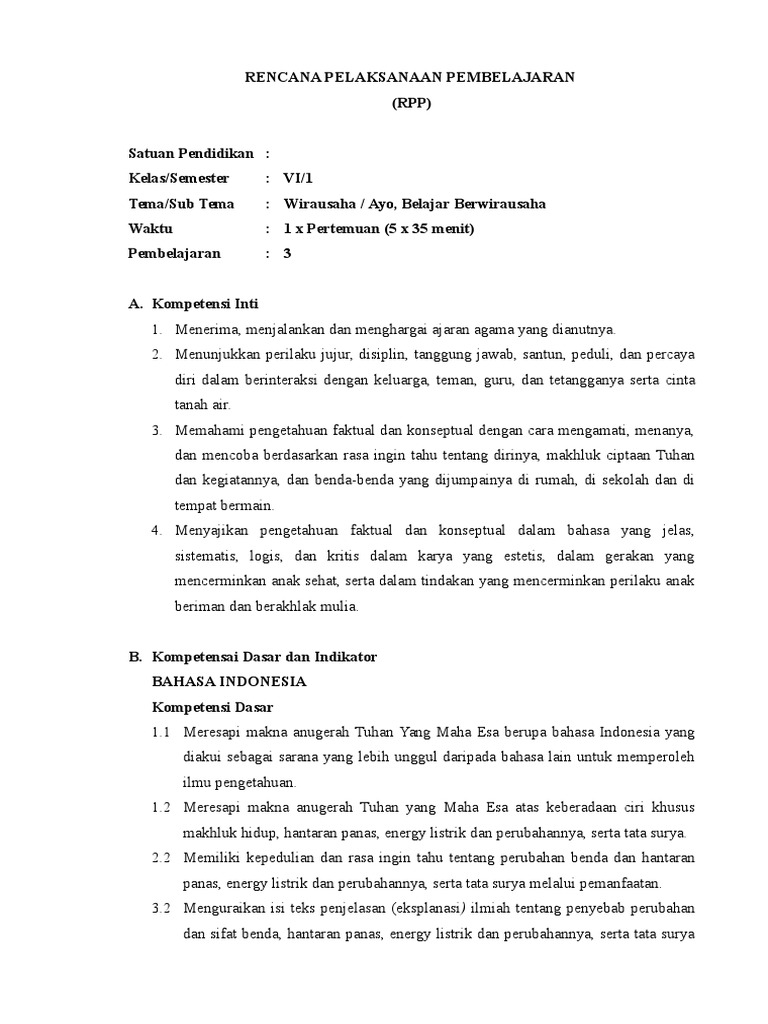 Rpp SD Kelas 6 semester 2 K13 tema 9