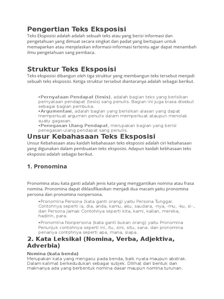 Teks Eksposisi: Contoh Kaidah Jenis Unsur Ciri dan Struktur Kebahasaan