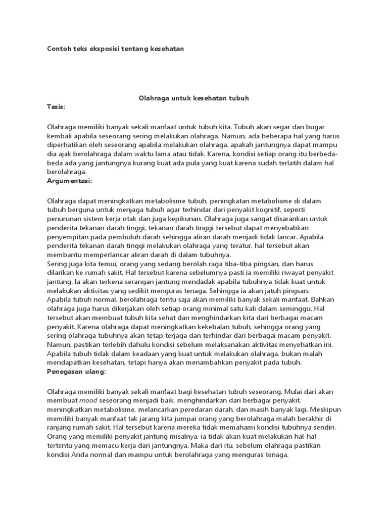 Olahraga untuk kesehatan tubuh Tesis: 1. Contoh Teks Eksposisi Tentang Kesehatan