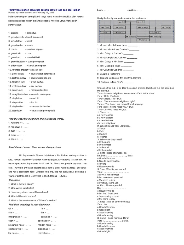 Contoh Soal Bahasa Inggris Tentang Family Tree - Dapatkan Contoh