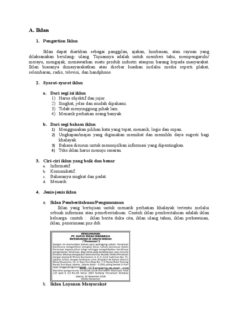 Contoh Iklan Pemberitahuan | Materi Pelajaran 10