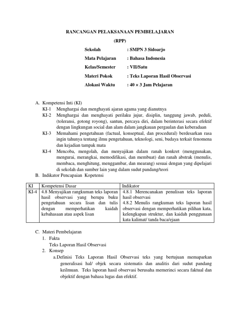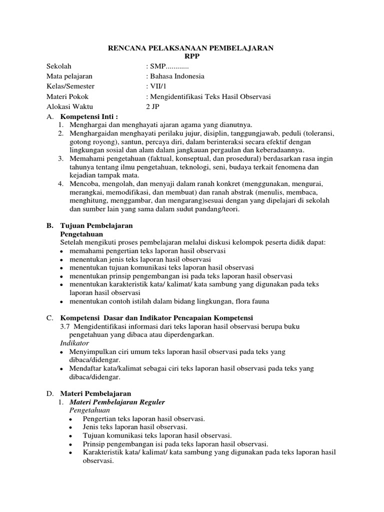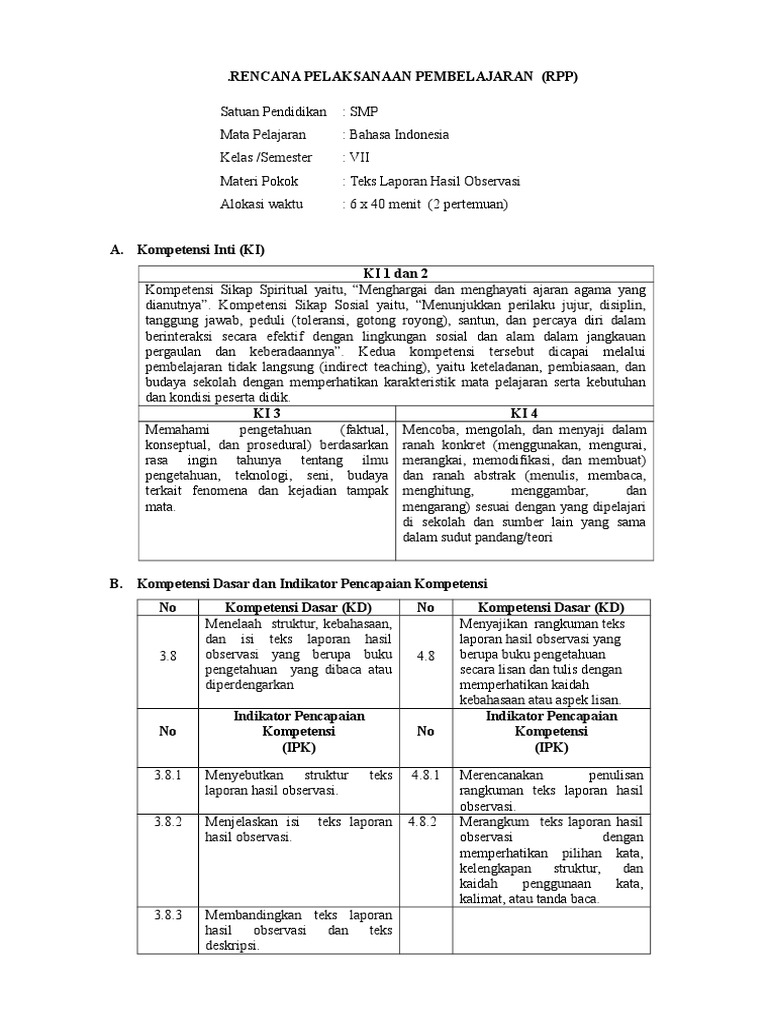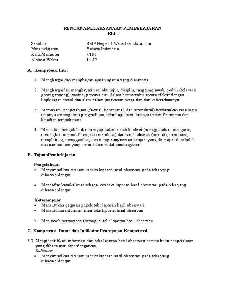 PDF) Contoh RPP Laporan Hasil Observasi SMP Kelas VII | isnaini shaleh - Academia.edu